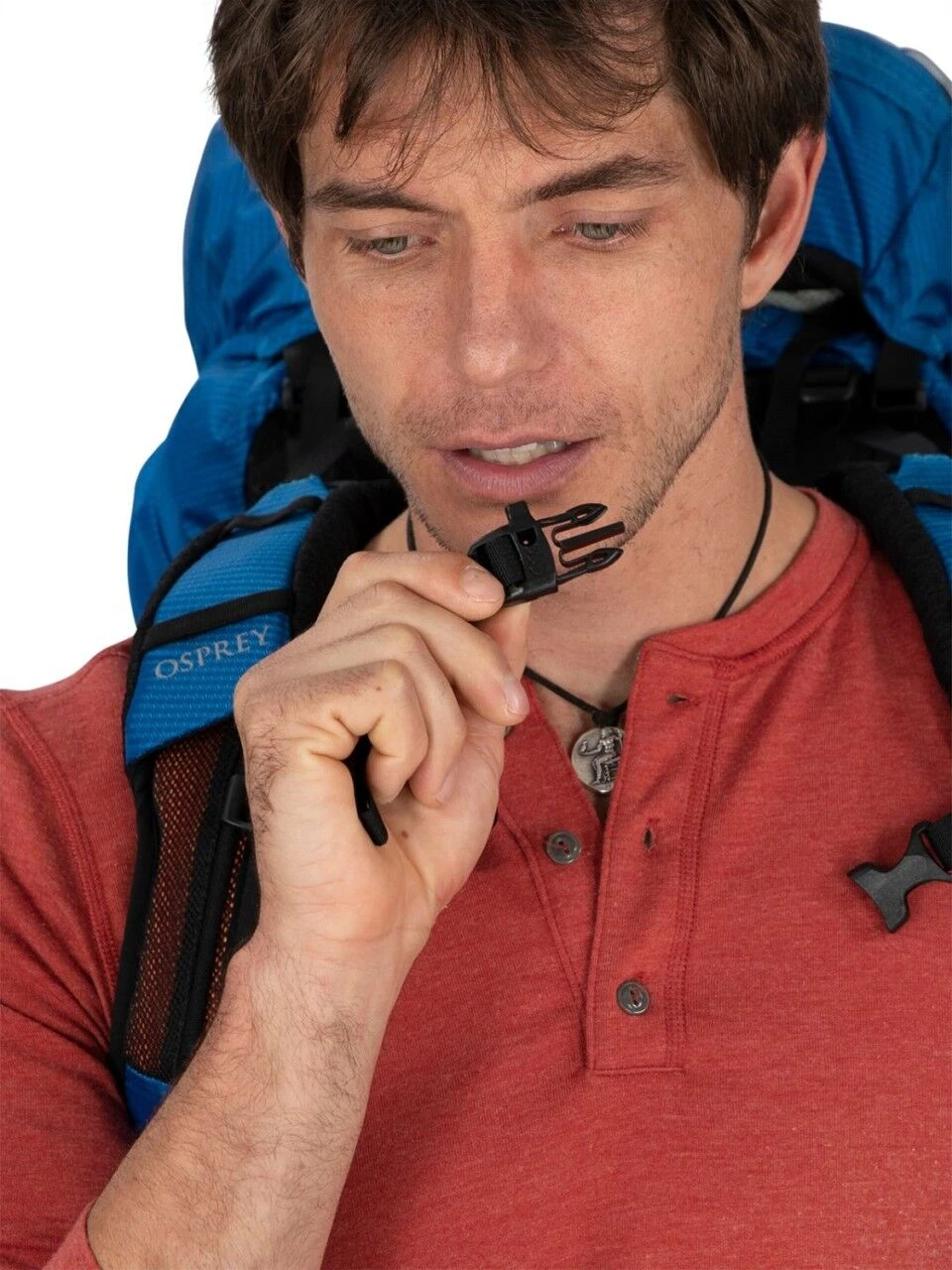 - Sternum strap with emergency whistle